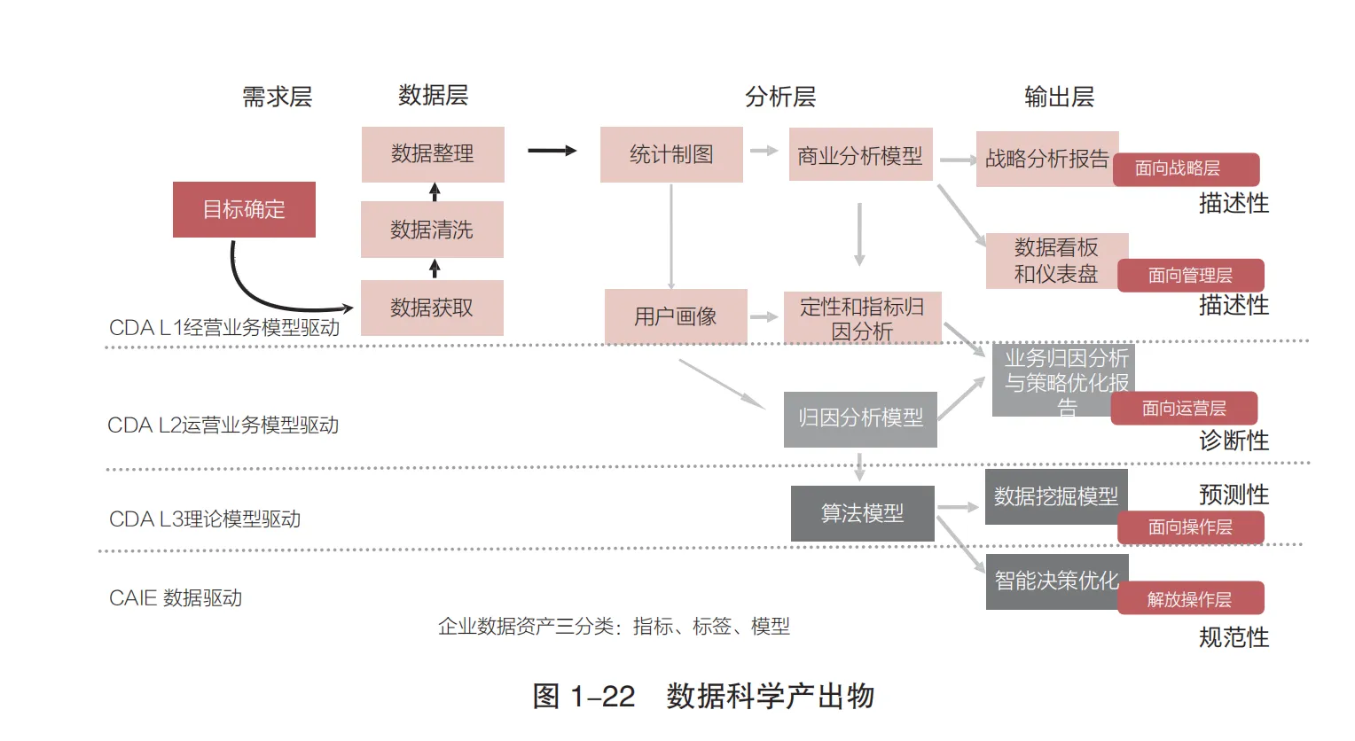 核心:按分析阶段与方法层级分类,适配企业不同决策层级的需求,明确数据分析的落地路径与价值定位。