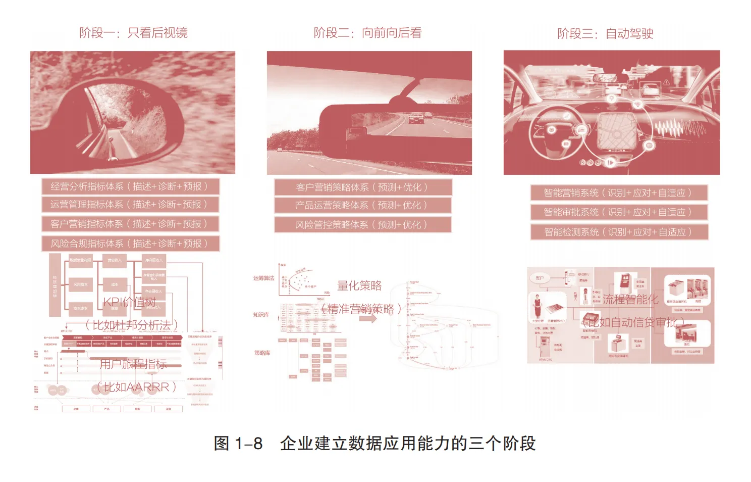 1. 企业数据应用能力的三个阶段 核心是从“回顾历史”向“预测决策”再到“自动化运营”的进阶: