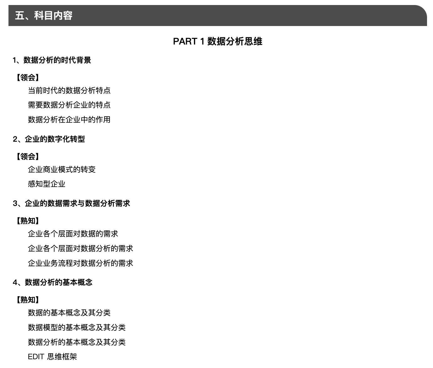 第一章:数据分析思维考点1:UVCA时代的特点考点2:数据分析背后的逻辑思维方法论考点3:流程化企业的数据分析需求考点4:企业数 ...