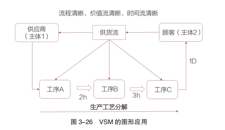 • 工具特性:既是静态的流程展示工具,也是动态的监控机制;通过绘制价值流图(如CDA教材图3-26),清晰呈现流程中“有价值节点”与“浪费节点”,帮助管理者定位流程问题点。