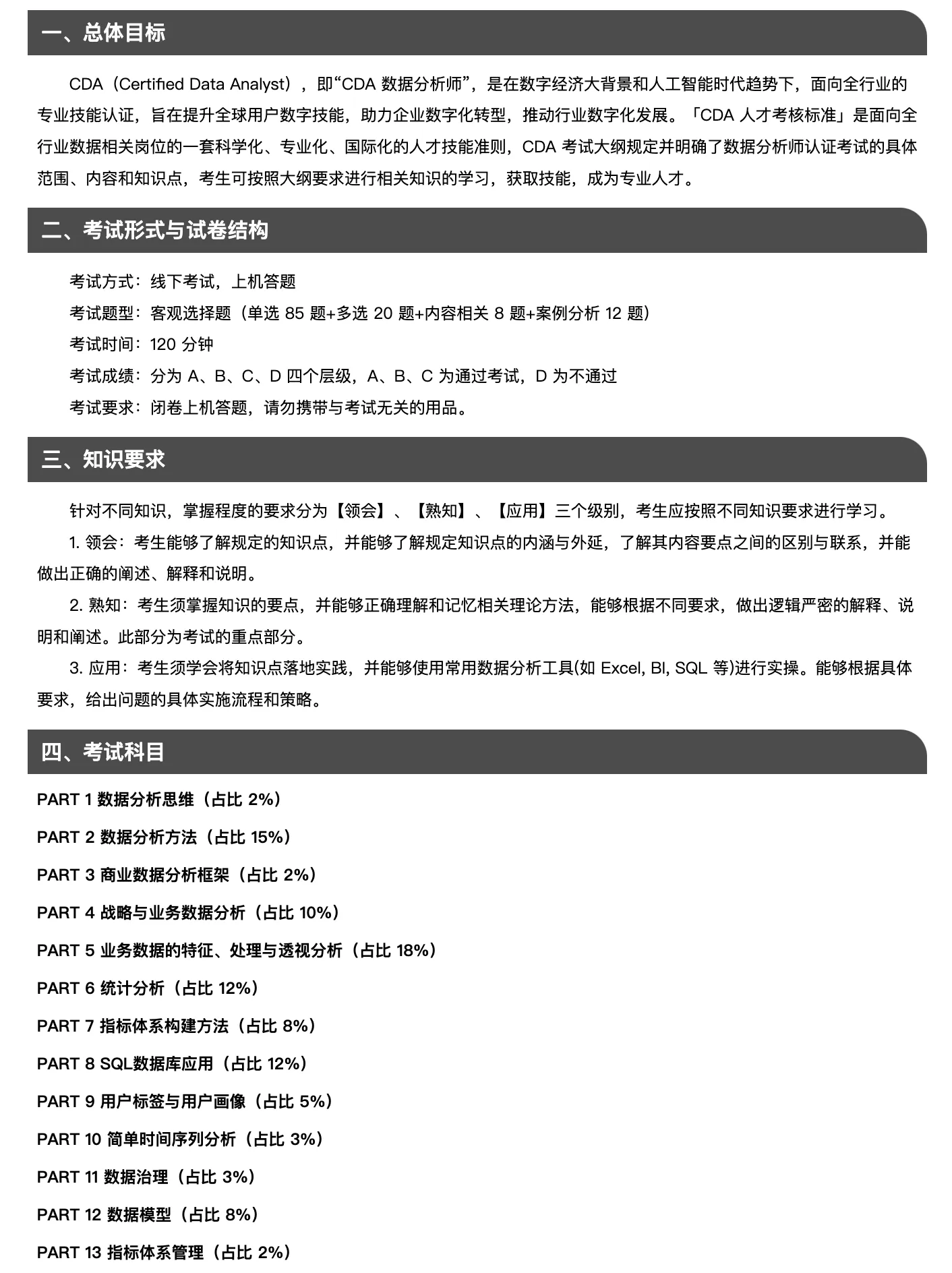 CDA一级知识点汇总手册