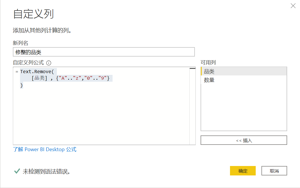 Text.Remove([品类] , {"A".."z","0".."9"})