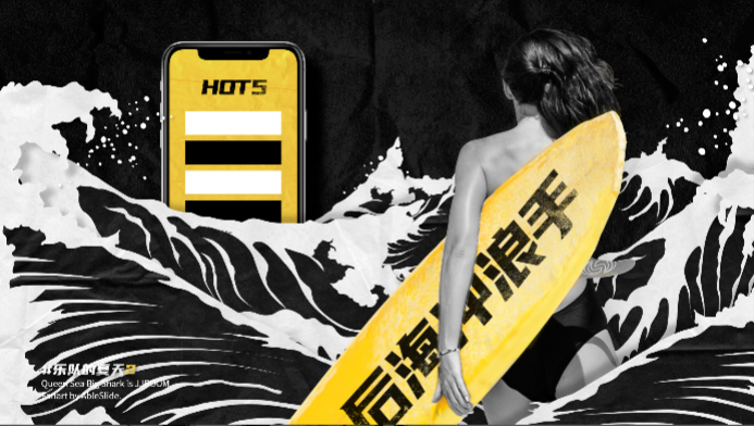 《乐夏》的这一页,这里面的扁平元素和实物的碰撞,可以对动画做不一样的处理,比如定格动画(这种动画也很适合拼贴风的设计),所以这里我用PPT函数模拟了这个定格动画的动态效果。