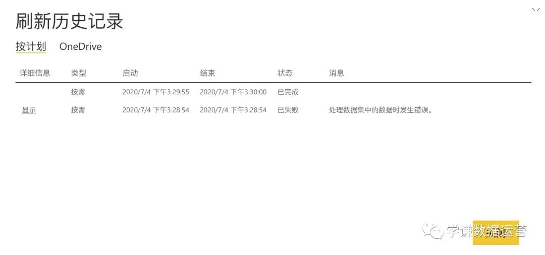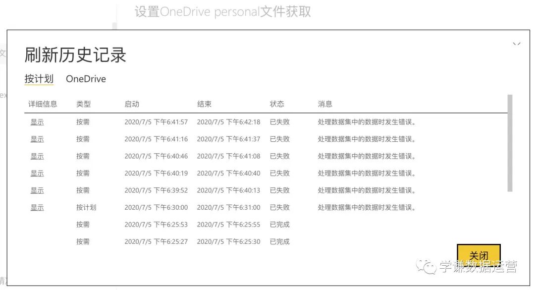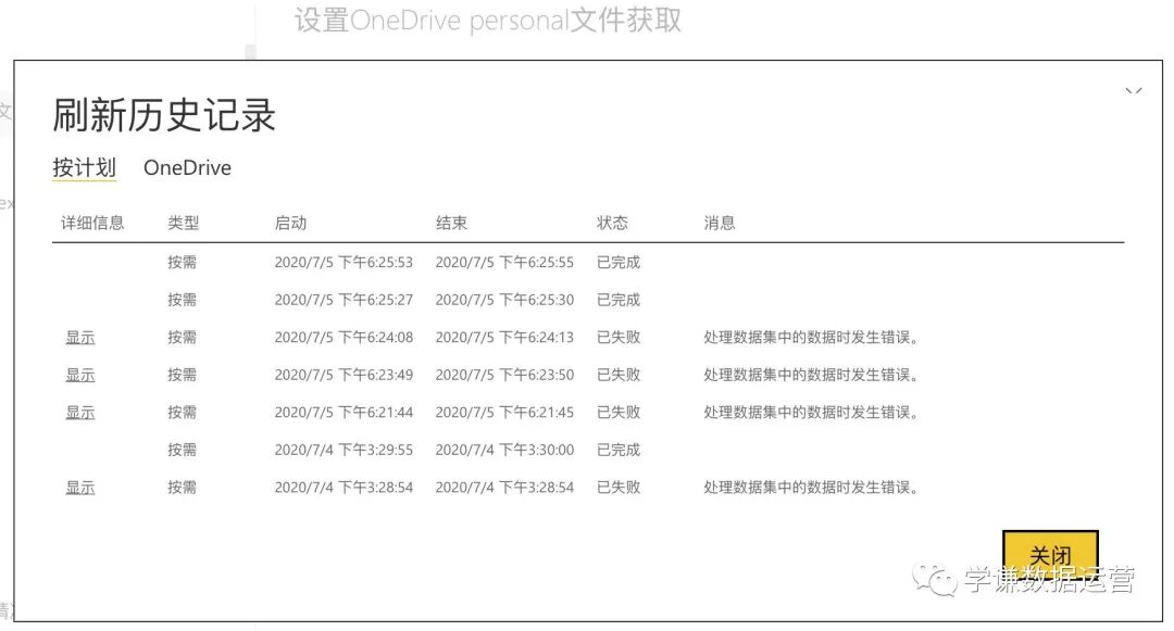 文中提到国内世纪互联版的PowerBI无法刷新onedrive数据源,除非‘科学上网’。文中也给出了测试,第一次刷新失败了,后来‘科学上网’后就成功了。