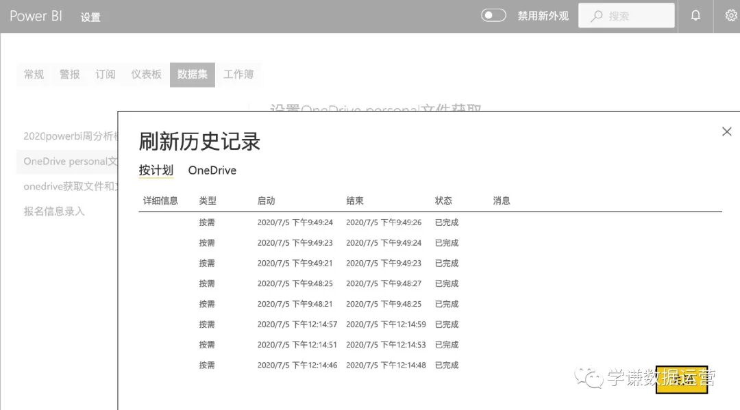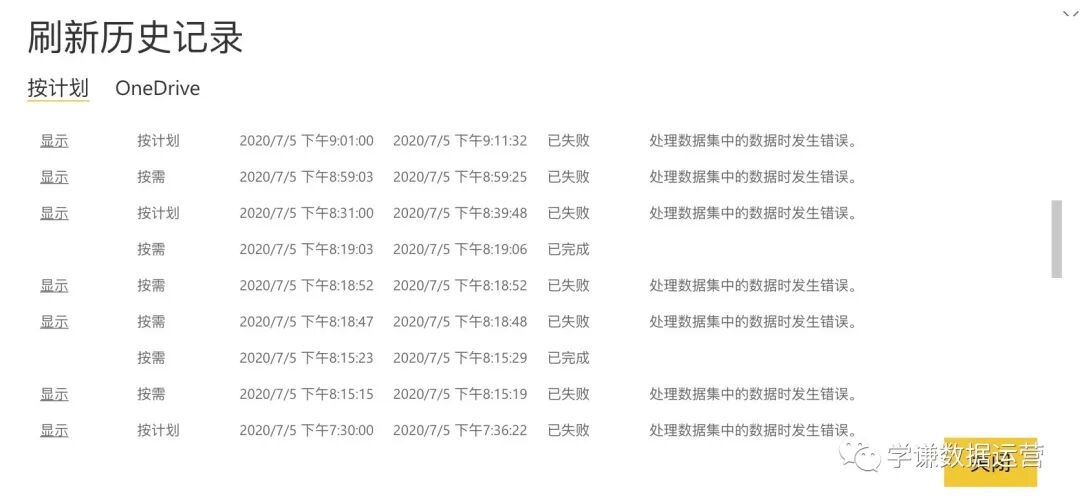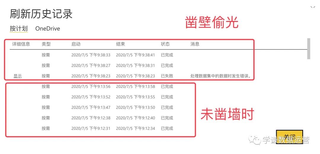 所以说国内世纪互联版的PowerBI从Onedrive personal获取文件后,云端刷新成功与否和本地是否“科学上网”关系不大,在两个环境中都完全是随机事件。
