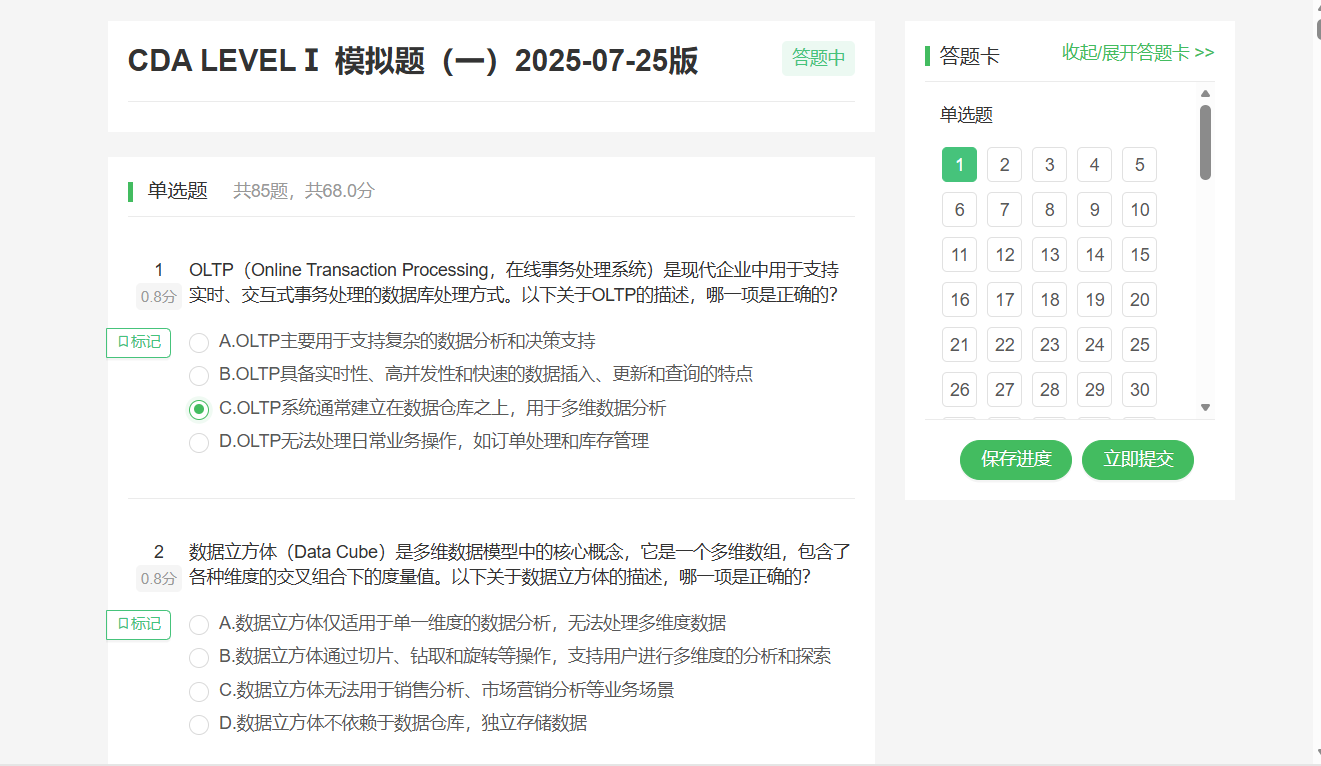 教材是根本,看教材会有一个底层认知,所以我一般都会从教材开始。教材粗读即可,让大脑有个印象。CDA网校有PDF版的教材,但不能下载,只能在线看。我根据总体页数,差不多每天看10页,有时候也会根据章节,争取看整章。这时候可以记笔记了,一些不懂的内容可以先标记上。把自己当做出题老师,书上可能会出填空、选择的题,都记录下来,做成可编辑的电子版。即便如此仍会有大量书上没有的内容出现在考题里,所以现在只是先记个框架,等做题的时候再补充可能会出题的内容。